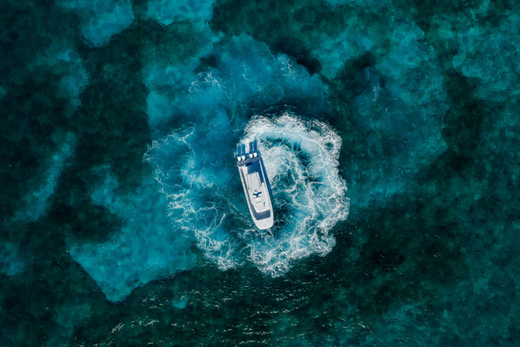 A twin-hulled, twin-stepped fishing machine. Now available with dual-row helm seating.