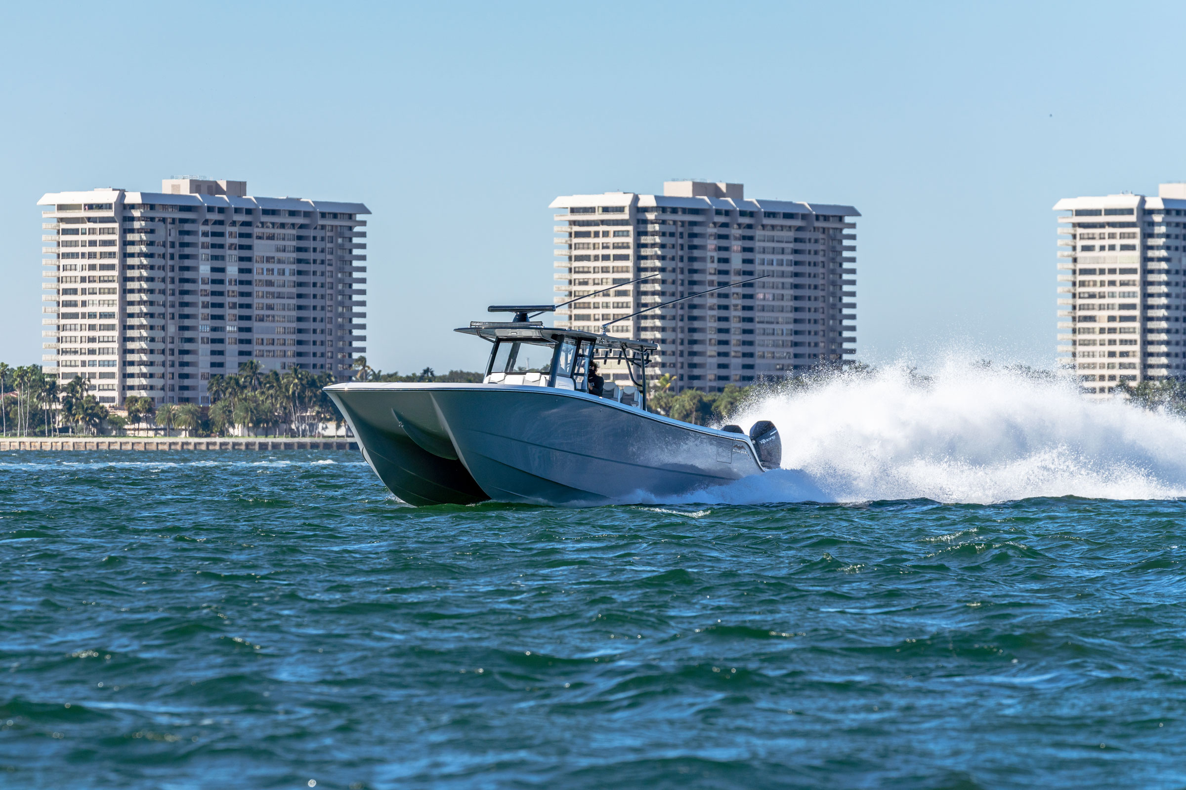 The hull design that changed catamarans forever, taken to a whole new level. The ultimate offshore fishing machine, with unprecedented size, range and amenities to carry everyone and everything anywhere, in any conditions. A 46’ catamaran designed to efficiently achieve world-beating performance out of quad-outboard engines, while providing sportfish-level fishability and specifications. The Invincible 46’ Catamaran. Like the Magnificent Frigate Bird, it will be king of all it surveys.
