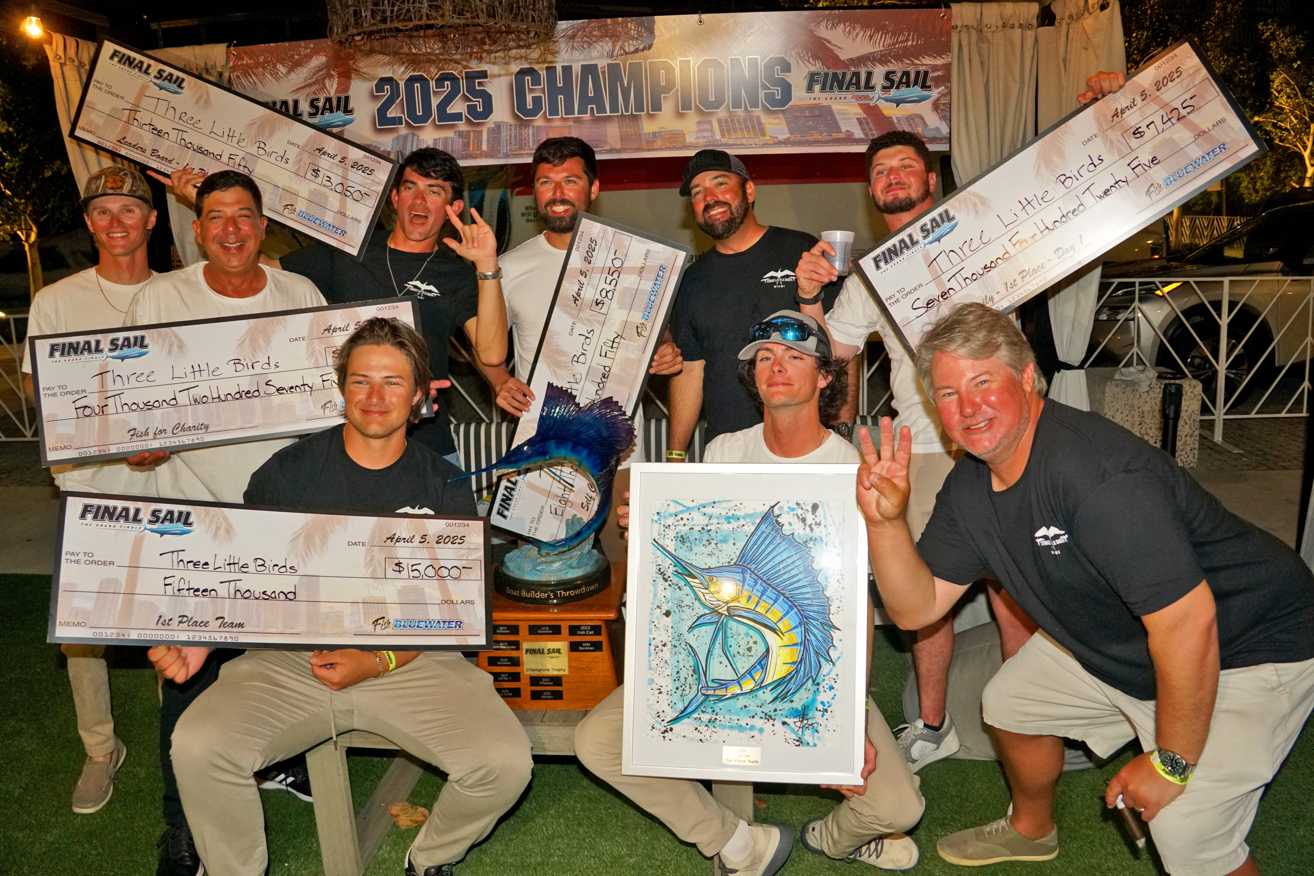 In an unforgettable debut, team Three Little Birds clinched first place at the prestigious Final Sail fishing tournament, the last leg of Fish Bluewater‘s Quest for the Crest Sailfish Series, amassing an impressive 20 points over two days of elite competition off the coast of Miami, Florida. The tournament marked the team’s first-ever experience in competitive fishing, making the victory even more remarkable.